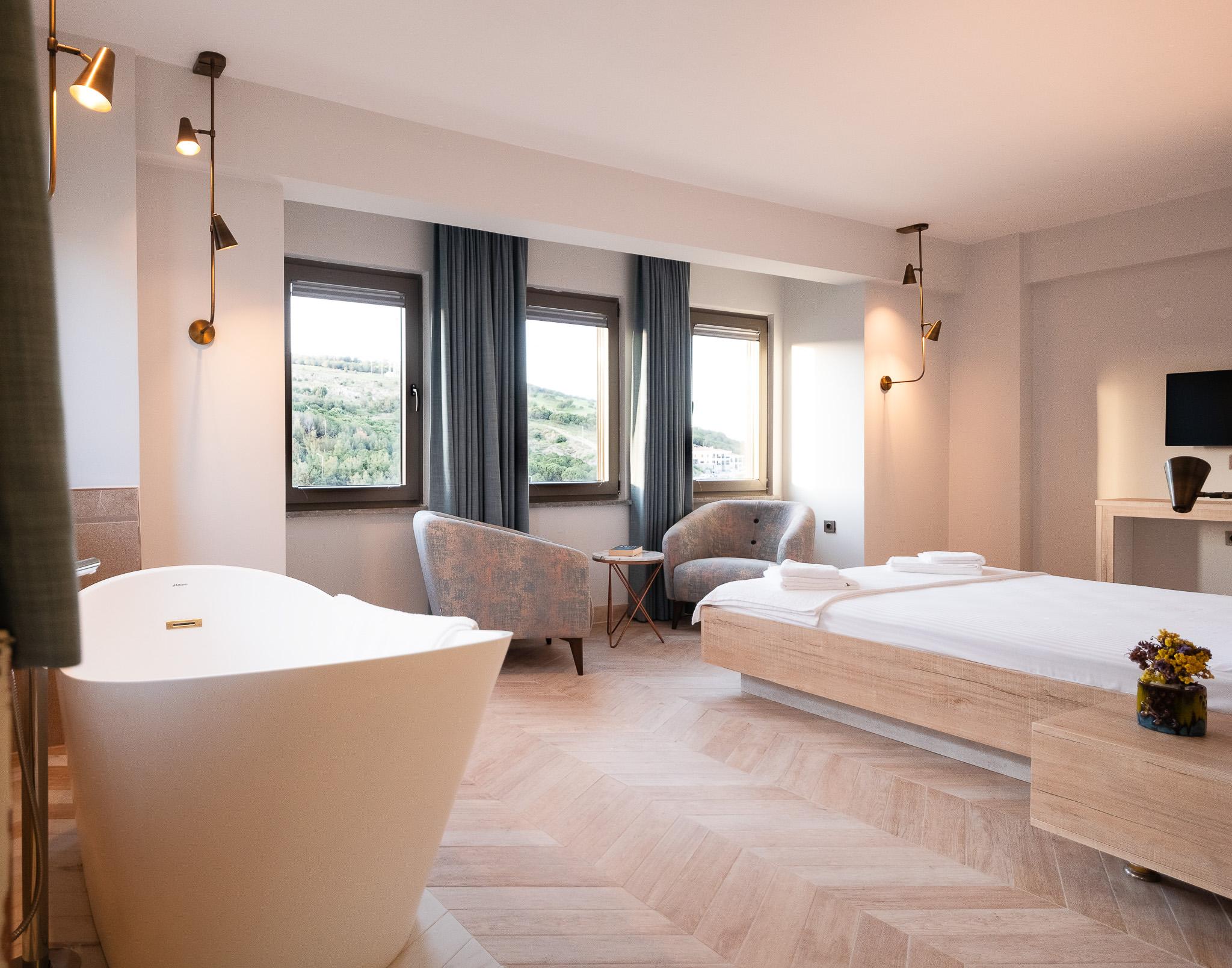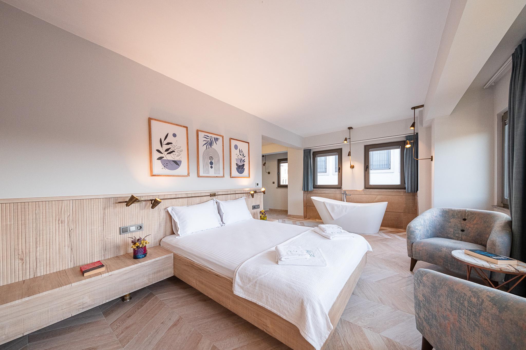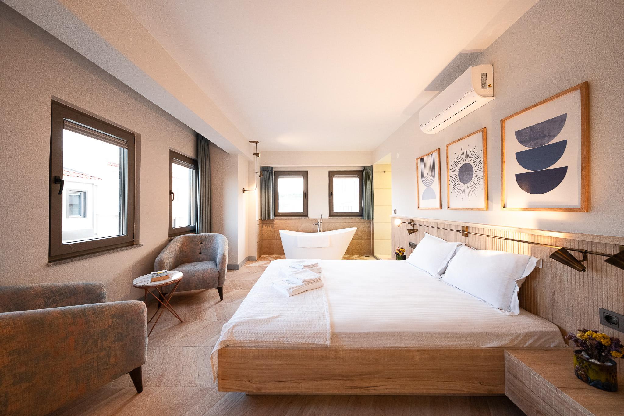 Bozcaada'nın güzellikleri arasında rahatlığın keyfini çıkarmak için ideal bir mekân: Küvetli odamız! Ferah alanı ve konforlu tasarımıyla, özel küvetinizde derin bir nefes alırken, adanın huzur dolu atmosferinin tadını çıkarabilirsiniz. Bu özel oda, sizlere unutulmaz bir konaklama deneyimi sunmak için hazır.